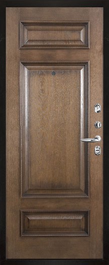 Дверь входная уличная Гранит Термо, цвет Горький шоколад, панель - Рим багет цвет Коньяк в zel-dveri.ru.