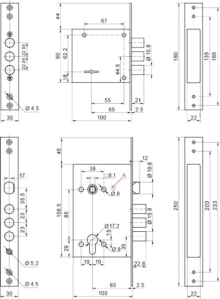 Бэксет (удаление ключевого отверстия)55 мм, 65 мм