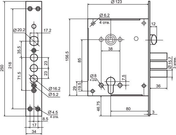 Корпус Border (Бордер) врезного замка с защёлкой ЗВ4-3/85М /79045/ в zel-dveri.ru.