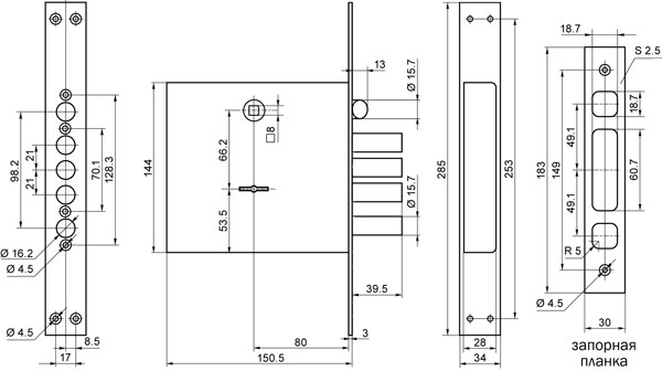 Замок Border (Бордер) врезной сувальдный с защёлкой ЗВ9-8 МК4Т/15 с тягами, 5 кл. /77741/ в zel-dveri.ru.