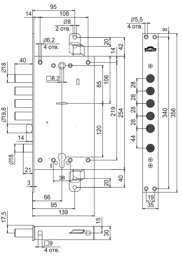 Купить Замок Elbor (Эльбор) врезной двухсистемный Рубин 1.08.46 с тягами, 5 кл. /27647/ в Зеленограде, Солнечногорске, Химки.