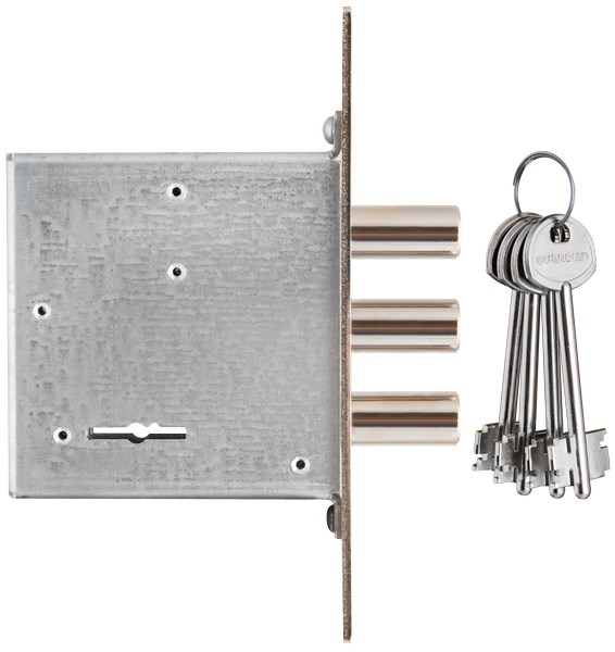 Замок Guardian (Гардиан) врезной сувальдный ЗВ 10.01 (без отв. планки), 4 кл. (длинный кл. 60 мм) /128:3356/ в zel-dveri.ru.