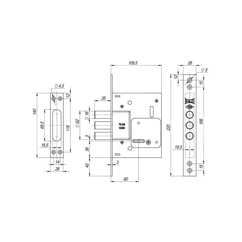 Купить Замок Kale kilit (Кале килит) врезной сувальдный 257/L, 5 кл. (тех комплектация) (кл. 60 мм) в Зеленограде, Солнечногорске, Химки.