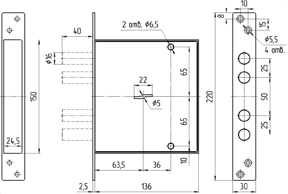 Бэксет (удаление ключевого отверстия)63,5 мм