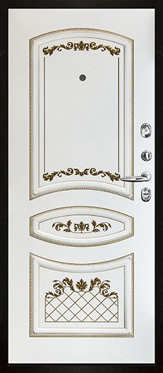 Дверь входная Президент Люкс зеркало, цвет горький шоколад, панель - алина цвет эмаль белая/патина золото в zel-dveri.ru.
