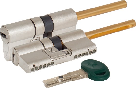 Цилиндровый механизм под вертушку с длинным штоком C31P413101C5 серии CHAMPIONS 31 имеет 5 пинов, один из которых действует при помощи магнита (запатентовано Mottura). Магнитный пин притягивается магнитом, находящемся на самом ключе. Как только ключ вынимают из цилиндра, пин возвращается в исходное положение в корпус цилиндра, делая затруднительным использование отмычек для открытия замка. Магнитный пин, единственный в своем роде, обеспечивающий высокую надежность цилиндра. Корпус и штифты защищены от высверливания (пины, сферы, колпачки изготовлены из закаленной стали). Установлены противовзломные заточенные верхние и нижние пины из закаленной стали. Двусторонний ключ, стержень и головка которого представляют собой единую деталь, выполненную из альпаки (сплава никеля и серебра). Головка ключа покрыта тонкой эргономичной пластмассой. Ключи с цилиндрами CHAMPIONS 31 поставляются с зарегистрированной карточкой владельца. Возможно свободное изготовление дубликатов ключей без предъявлении карты владельца. Размер цилиндра: 72 мм (36+10+26). Цвет: матовый никель.