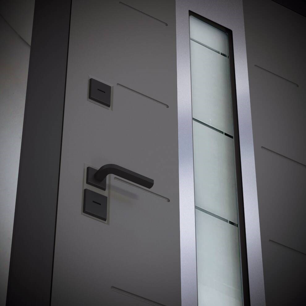 Отделка снаружиВлагостойкая МДФ панель 10 мм с фрезеровкой, цвет "Grafit silk" (износостойкое покрытие) с отделкой из шлифованного хрома