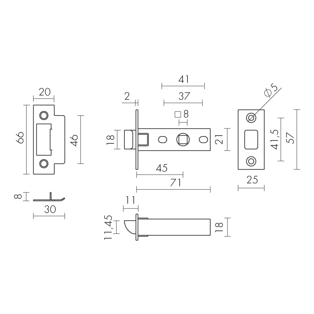 Защелка Fuaro (Фуаро) врезная PLASTP12-45-25 (P12-45) BL черный в zel-dveri.ru.